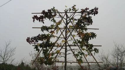 Liquidambar styraciflua ‘Worplesdon’ (Amberboom) krijgt mooie hefstverkleuringen, leiboom. De herfstkleur van de varieteit ‘Worplesdon’ is roder dan van de gewone Amberboom. De verkleuring van de amberboom is erg afhankelijk de vochtigheid van de grond, de zuurtegraad en de hoeveelheid licht die de hij krijgt. Het leirek is 150cm breed en 120cm hoog en heeft vier etage’s. De stam hoogtes zijn van 180 cm tot 20 0cm (220 cm hoog vanaf stamomtrek 14-16cm), de gewenste hoogte kunt u aangeven bij opmerkingen in de winkelwagen.