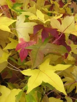 Liquidambar styraciflua (Amberboom als leivorm) krijgt mooi herfstkleuren.