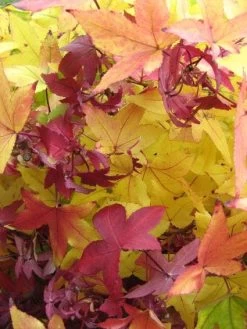 De verkleuring van de amberboom is mede afhankelijk van de standplaats en grondsoort. Op de drogere gronden zullen de bladeren geeltinten krijgen. Op de vochtige gronden zullen de bladeren verkleuren naar diep oranjerode tinten.Â