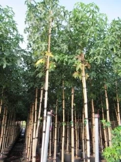Indien er voldoende ruimte is, hoeft deze boom niet veel gesnoeid te worden en groeit de amberboom uit tot een prachtige solitaire boom. De hoogte van de stam is ongeveer 200cm, daarboven beginnen de takken (de boomkruin). Hoe ouder de boom, des te dikker de omvang van de stam en beter vertakt de boomkruin.