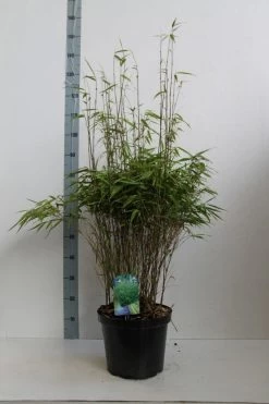 Bossig groeiende, niet woekerende bamboe. Hoogte circa 2 m. Wintergroen. Dunne, iets overbuigende stengels. Jonge stengels bruinrood. Smal, groen blad. Voor zon en schaduw. Elke grondsoort. Zeer winterhard.
