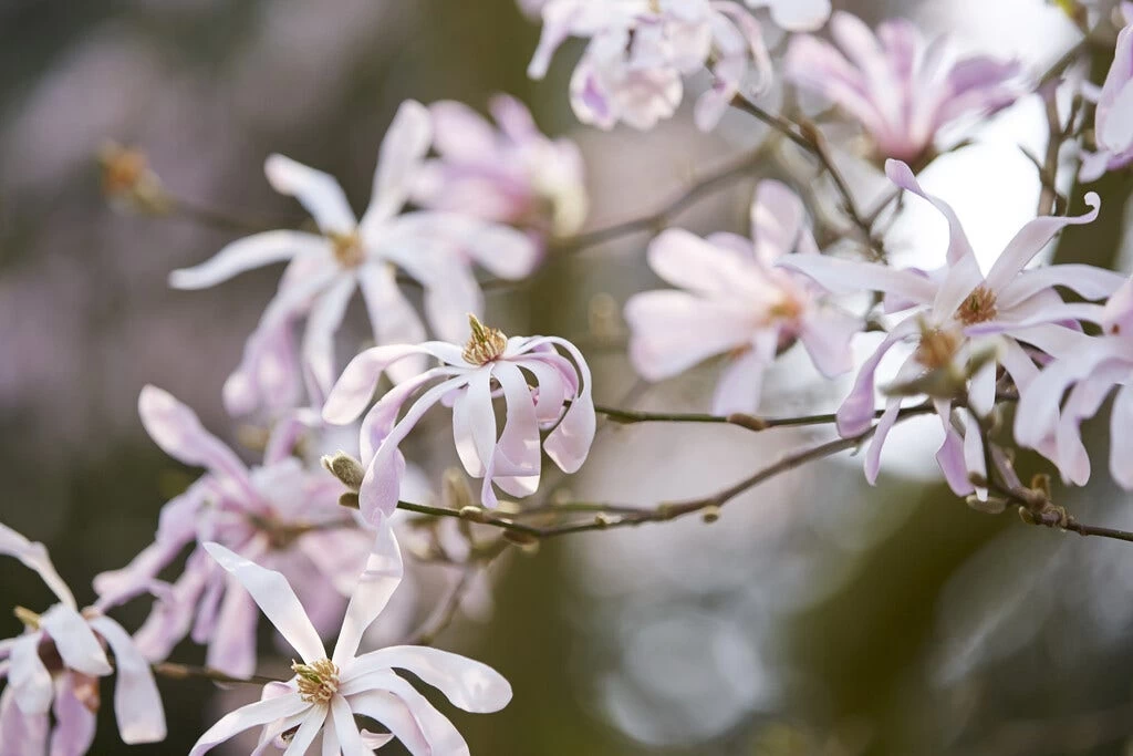 Magnolia loebneri ‘Leonard Messel’ (beverboom of valse tulpenboom) bloeit met lichtroze stervormige bloemen rond april-mei. Is rijkbloeiend en bloeit iets later dan de meeste andere Magnolia’s. Het blad is middengroen tot donkergroen en smal ovaal. De bloemen geuren licht.