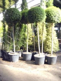 Deze Ligustrum delavayanum is gekweekt als boom met een stamhoogte van circa 180cm, waarna de bol begint. Hoe dikker de stamomtrek, hoe ouder de boom en hoe groter de bol. Deze boom is ook leverbaar met een lagere stamhoogte. Zie Ligustrum op stam
