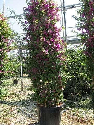 Bougainvillea glabra is een uitbundig bloeiende kuipplant. De Bougainvillea bloeit de hele zomer door indien hij genoeg zonlicht krijgt.