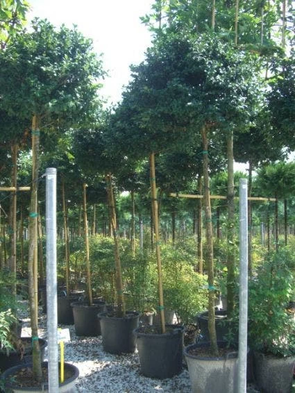 De stamhoogte van onze bomen is standaard 180-220cm. Bekijk ons blog voor meer informatie over de maten van onze bomen.