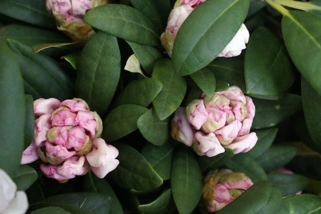 Rhododendron ‘Porzellan’ is een laagblijvende bladhoudende Dwergrhododenron hij groeit tot circa 1 m hoog en breed.