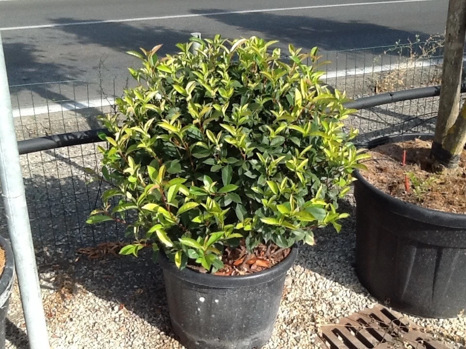 Photinia fraseri ‘Carré Rouge’ is hier als bolvorm opgekweekt, waardoor een mooie en bijzonder bladhoudende bol ontstaat. Het blad is glanzend donkergroen. Jong blad is eerst rood.