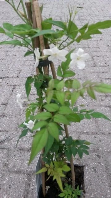 Jasminum officinale staat graag op een beschutte plek en kan dan goed tegen de winter.