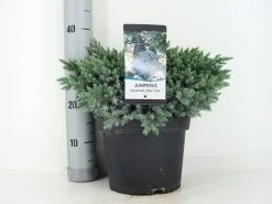 Compact groeiende conifeer. Wintergroen. Bolvormige groeiwijze. Hoogte tot 80 cm, breedte ruim 1 m. Loof intens zilverblauw. Langzaam groeiend. Mooie solitairplant. Humusrijke grond. Lichte standplaats.