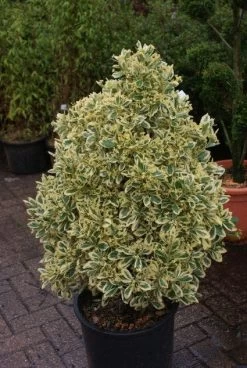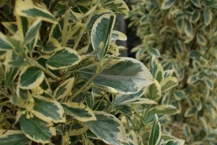 Euonymus japonicus ‘Bravo’ is een witbonte groenblijvende heester.