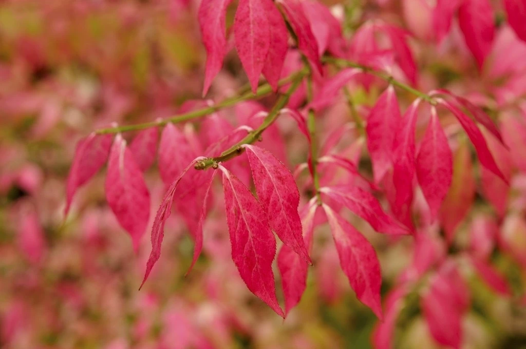 Euonymus alatus is een schitterende struik, waarvan de bladeren in de herfst dieprood vekleuren.