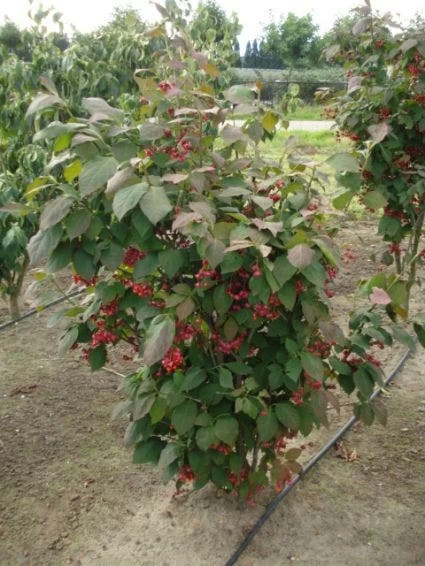 Euonymus planipes geeft een overvloed aan vruchten en een schitterende herfstkleur.