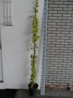 Hedera colchica ‘Dentata Variegata’ Deze klimplant heeft wit/groene grote bladeren. Krijgt in de herfst zwarte bessen. Goed groeiende plant, kan 8 meter hoog worden. Vanwege de trage groei kan dit tientalle jaren duren. Winterhard. Kan zowel goed tegen zon als schaduw.