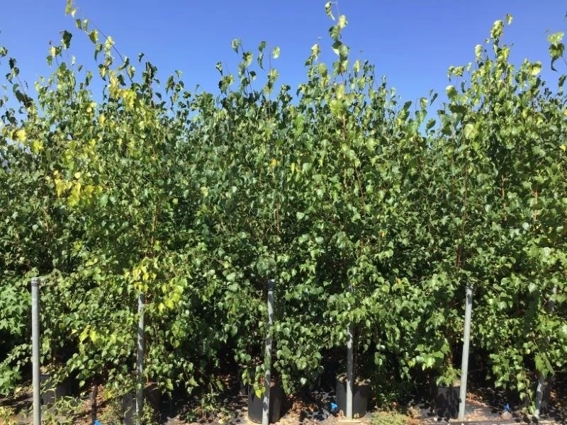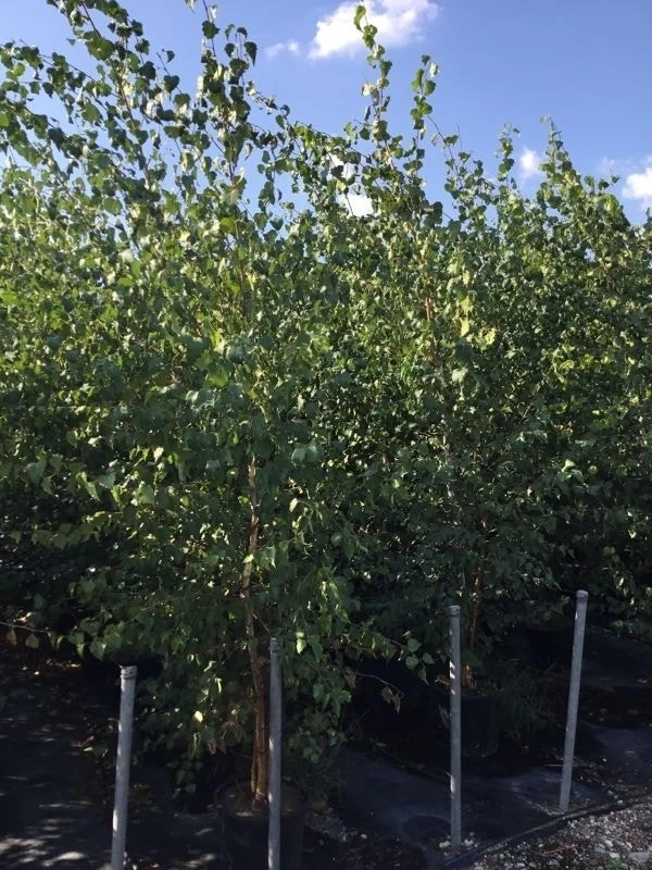 Betula pendula gekweekt als meerstammmige boom. Betula alba is het synoniem van Betula pendula. De Nederlandse naam is Ruwe Berk. Als deze berk jong is, zijn de stammen nog bruin, deze verkleuren later naar mooi wit en vervolgens krijgt deze zijn zwarte tekening in de stam, vooral vanaf de stamvoet, onderaan de stam. Deze meerstammige berk vormt daarmee een echte blikvanger in uw tuin. Let er wel op dat deze bomen kunnen uitgroeien tot circa 20-30 meter hoogte.