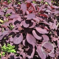 Cotinus coggygria ‘Royal Purple’ is een Pruikenboom met rode bladeren.