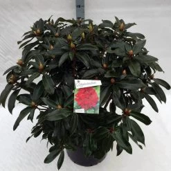 Rhododendron ‘Halfdan Lem’ heeft een rode bloemkleur, bloeiend vanaf mei.