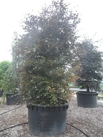 Fagus sylvatica ‘Purpurea Latifolia’ is een langzaam groeiende rode beukenboom met diep gekerfde en getande rode blaadjes.
