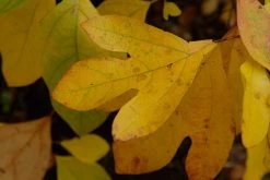 De Sassafras kent een bijzondere herfstverkleuring van geel naar geel-oranje en rood.