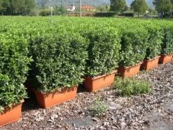 Viburnum tinus ‘Eve Price’ (groenblijvende sneeuwbal) is een populaire wintergroene heester met lange bloei. Vaak al vanaf oktober tot maart-april. Deze Viburnum tinus is gekweekt als kant en klare haag.