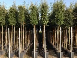 Quercus ilex (Steeneik) is een groenblijvende boom die u steeds meer in de tuinen tegenkomt. Indien gewenst kunt u de kroon van de Steeneik zeer goed in model snoeien. De bladeren van de Steeneik zijn grijs-groen van kleur. Quercus ilex groeit vrij traag. De Steeneik staat graag op een beschutte plek en is winterhard.