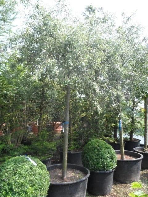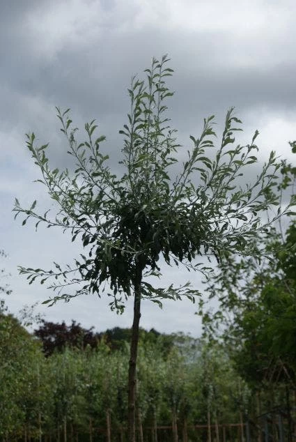 De takken van de Pyrus salicifolia ‘Pendula’ kunnen vrij breed uit gaan hangen, waardoor de boom ruimte nodig heeft.