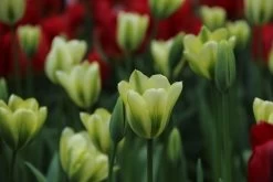De bloemen van deze parkiettulp kunnen ook als snijbloem worden gebruikt om in een vaas neer te zetten.
